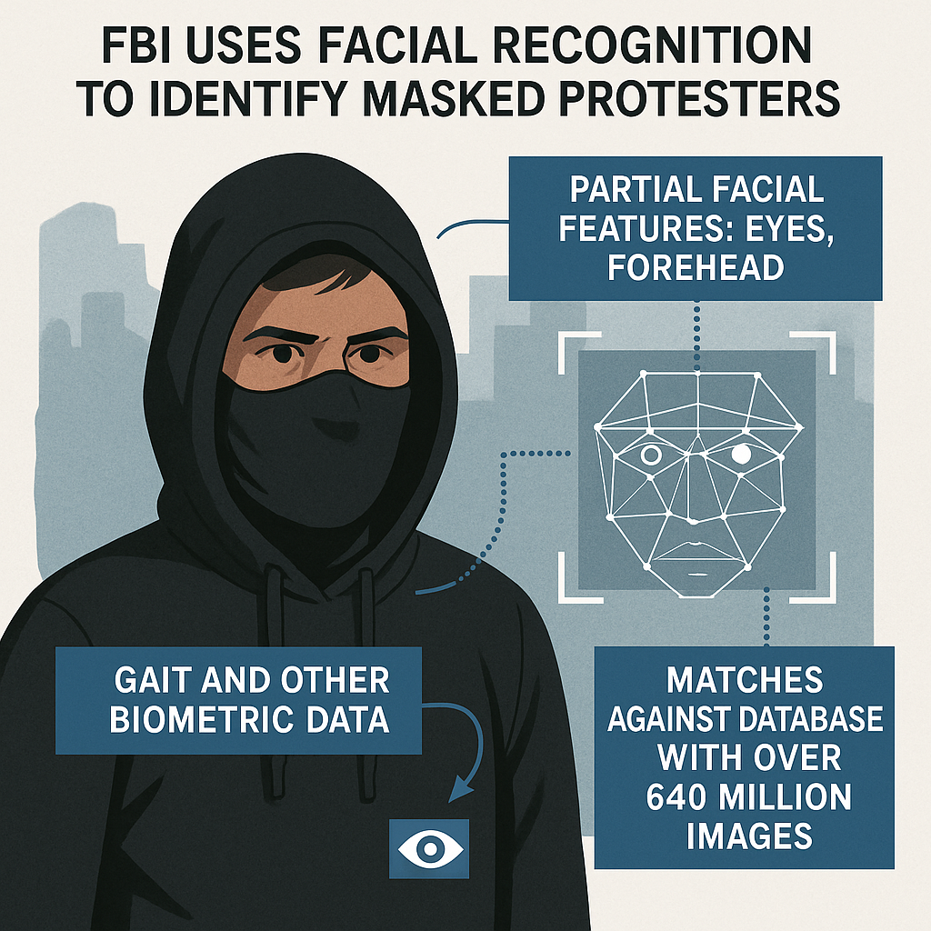 Cet incident met en lumière les technologies biométriques avancées utilisées par le FBI, notamment les systèmes de reconnaissance faciale capables d’identifier des individus même lorsqu’ils portent des masques. Ces technologies reposent sur l’analyse de traits partiels du visage (yeux, front) et des données comportementales comme la démarche, en s’appuyant sur une base de données de plus de 640 millions d’images.