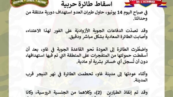 Le Front de Libération de l’Azawad (FLA) a annoncé avoir atteint “avec précision” un avion de combat de l’armée malienne alors qu’il tentait de...